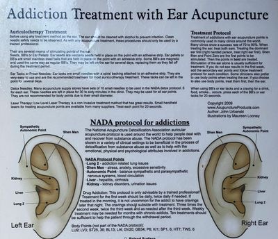 Auricular acupuncture involves placing needles or “seeds” at specific points on the ear to alleviate withdrawal symptoms, reduce cravings, and support overall well-being. This complementary therapy can be an effective tool for managing physical and emotional discomfort during the recovery process. See NADA.com for an in depth description of techniques and benefits.